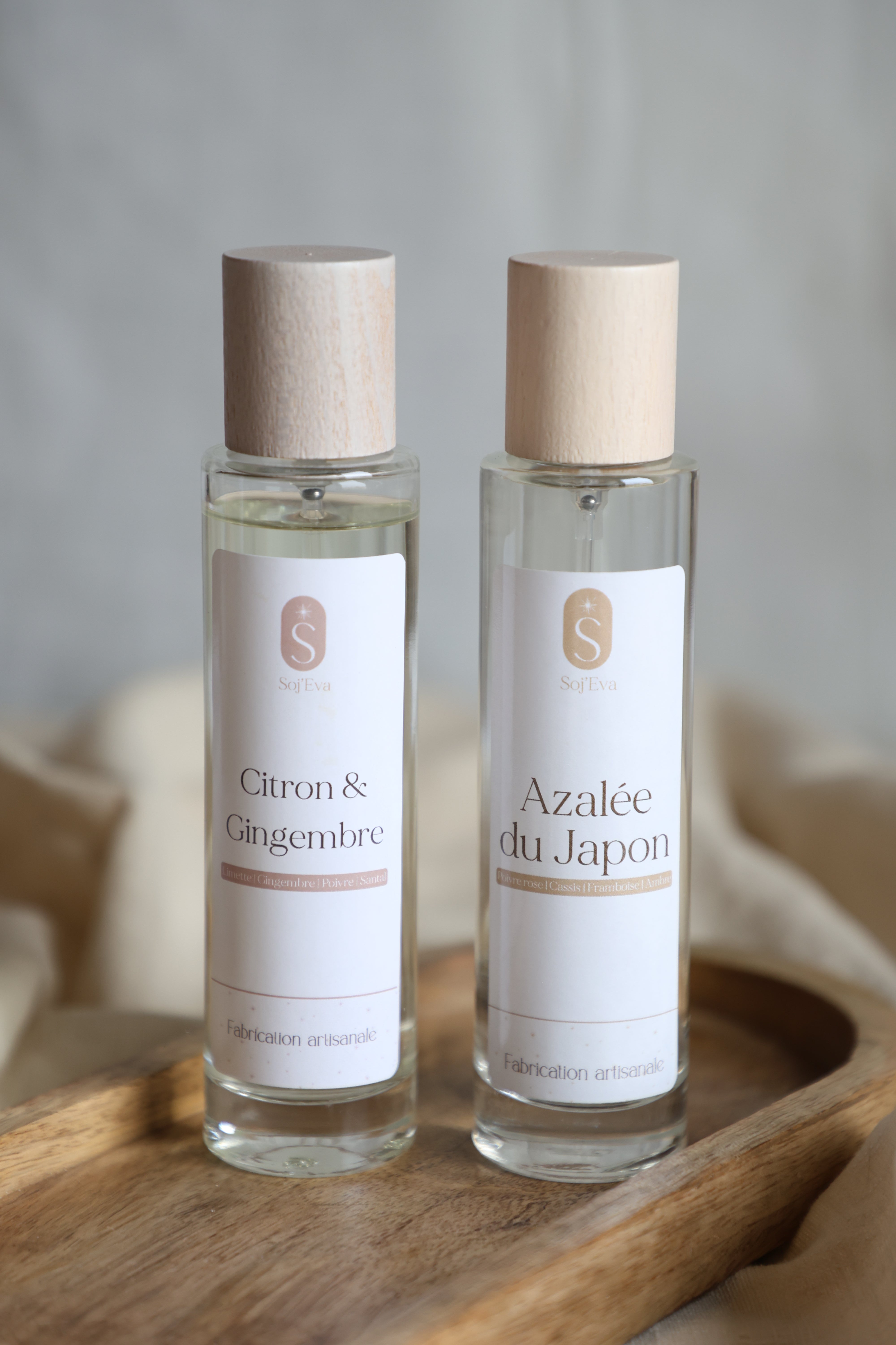 Nouveau packaging pour cette brume parfumée, plus sobre et élégante. Dotée d'un bouchon en bois et d'un flacon en verre recyclable, elle permet une pulvérisation fine et délicate grâce à son nouveau vaporisateur.